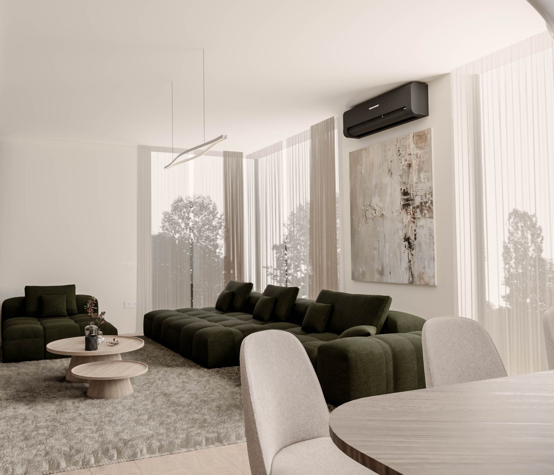 Pri notranjem oblikovanju novogradnje, prostorne hiše velikosti 200 m², namenjene družini, smo se osredotočili na ustvarjanje sodobnega, funkcionalnega in elegantnega doma, ki hkrati nudi toplino in udobje za vsakodnevno življenje.